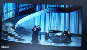 Mais pourquoi ce lit, et pourquoi Riccardo et Renato sont-ils vêtus, tout du long, d’un pyjama et d’une robe de chambre, le pyjama étant remplacé par une chemise de soie blanche pour Amelia ? Est-ce pour nous dire que tout se joue autour d’un drame intime à trois ? Mais Amelia et Riccardo sont restés des amants chastes… Est-ce pour nous dire que tout ceci n’est qu’un cauchemar sorti du cerveau de Riccardo ? Mais il meurt bien à la fin, tué d’une balle dans le dos de la main de son meilleur ami Renato… En tout cas le décor néo Art déco noir et blanc et l’atmosphère de pénombre contribuent à accréditer l’idée que sous une apparente désinvolture, consciemment ou inconsciemment, Riccardo met en scène de bout en bout son suicide programmé, avec la complicité de Verdi.