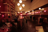 Avec Martial, un des serveurs (également propriétaire d’une boîte de design), ils donnent le ton. Leur accueil est charmant, leur look hype (tee shirt marin et jean tendance). Mais si le lieu est envoûtant, c’est parce qu’il ne néglige aucun détail et pousse le raffinement à son comble. Les vers d’un des poèmes de la Légende des siècles de Victor Hugo ornent le plafond, les lumières tamisées rouges créent une atmosphère chaude et romantique. A la carte, près de 130 vins (au verre), provenant du monde entier, des escargots, des ravioles de Royan, du Pont l’Evêque et même de la Tête de Moine !