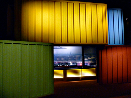 Avec l’invention du conteneur en 1956 par l’américain Malcom Mac Lean, le transport s’est rationalisé. L’usage de différentes couleurs pour ces boîtes métalliques en fait une masse singulièrement photogénique ce que démontre avec bonheur la dernière partie du parcours. Un porte-conteneurs, apprend-on, peut en charger jusqu’à 18.000 soit six fois la capacité des meilleurs bateaux des années soixante-dix.