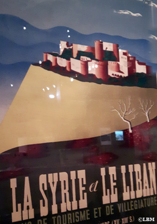 Puis en 1934 commence un véritable chantier de restauration, permettant d’ouvrir le site aux touristes deux ans plus tard. Quantité de photographies, gravures, peintures, affiches, guides de tourisme résolument folkloriques parsèment les murs de la deuxième salle, témoignant de la passion de Deschamps, surnommé « l’inventeur du Crac », et de la ferveur touristique qu’elle engendre. Tout cela dans la foulée de l’Exposition coloniale de 1931 célébrant la « grande France » coloniale, bien entendu. Les Français voyageurs découvrent Palmyre, Alep, Baalbek, et le Crac des Chevaliers, « le témoin le plus majestueux de l’art français en Orient » (sic !). « Tel Narcisse, l’Occident fasciné contemple sa propre image dans le Crac » commente un panneau de la deuxième salle.