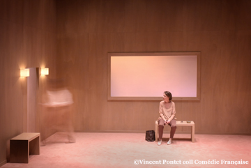 Sur la petite scène du Studio-Théâtre, avant même que le spectacle ne commence, un décor dépouillé, paisible et chaud s’offre à nous. Fort agréable à contempler. Une œuvre déjà en soi : une pièce quasi vide dans des tons vieux rose et bois clair éclairée par quatre petites appliques disposées par paires de chaque côté de l’espace, et une grande fenêtre rectangulaire sur le mur du fond. Pour tout mobilier, trois bancs placés devant chacun des trois murs. Ce décor, à l’atmosphère parfaitement “cosy”, s’avèrera unique et immuable. Les personnages, vêtus dans un beau dégradé de teintes allant du blanc jusqu’au brun, se fondront ensuite harmonieusement dans ce que nous imaginerons alors être un salon d’hôtel. Ce décor, qui tend finalement vers une certaine abstraction, non seulement laisse le spectateur libre de son imaginaire, mais sert aussi très intelligemment le mystère de la pièce, se révélant tour à tour apaisant et angoissant, rassurant et menaçant, jeux de lumière et effets sonores aidant. Le rapport à l’espace est apparemment un élément très important du travail du metteur en scène Tommy Milliot, qui signe ici aussi la scénographie. Il s’en explique : “Je ne dissocie jamais l’espace de la mise en scène, les deux sont intrinsèquement liés dans le processus de la création. La direction d’acteurs, tout comme le rapport aux spectateurs, naissent le plus souvent de l’espace. C’est le point de départ de tout : du jeu, de la dramaturgie, du son, de la lumière. Je ne conçois pas de décor, mais un espace de projection sensoriel rendu possible par la convergence de ces différents éléments.”