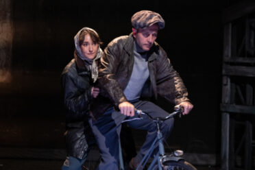 Le dispositif scénique est réussi, il multiplie les espaces, tour à tour éclairés en laissant le reste de la scène dans le noir. Permettant la succession rapide de scènes courtes, les comédiens allant et venant discrètement, aidés en cela par la perpétuelle pénombre. Il n’y a pas de grands effets inutiles, superficiels, tout est dans l’authentique, au rythme de la vie qui s’écoule, descente après descente dans le trou, au son du marteau-piqueur, ou au gré des baisers en bicyclette ou des visites chez le médecin quand la toux devient toujours plus annonciatrice du pire.