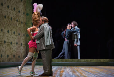 Pourquoi ces Contes sont-ils si difficiles à monter? D’abord parce que selon Keck, il leur manquera toujours ces « petites coupures » que le Maître avait si bien pratiquées dans ses précédents chefs-d’œuvre. Ensuite la structure en un prologue puis trois actes et un épilogue nous transporte dans cinq lieux successifs. Comment assurer la fluidité de plusieurs contes? Le prologue, bien sûr, se déroule toujours dans la taverne de maître Luther, où nous faisons connaissance du poète Hoffmann en mal d’inspiration, et de sa Muse qui se présente sous les traits de son ami Nicklausse (rôle de mezzo travesti). Puis le chœur des étudiants entonne « une chanson à boire » et la Muse manipule le conseiller Lindorf, première incarnation du diable (il y en aura quatre), qui jure de supplanter le poète dans le cœur de la prima donna Stella.