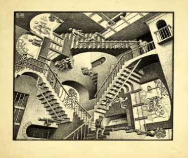 Et la richesse de l’exposition se double d’une mise en scène accrocheuse. L’immersion du visiteur dans la salle « Es-tu vraiment sûr qu’un sol ne peut pas être aussi un plafond », donne vertigineusement le sentiment de l’infini. La « relativity room » est à parcourir avec un ami, qui revoit de manière amusante l’impression de taille et de distance. L’animation vidéo de ce qui est sans doute le plus célèbre motif d’Escher « Relativité », où des personnages se croisent sans jamais pouvoir se rejoindre, dans des escaliers situés dans différents espaces, est sans doute l’un des clous de l’expo. Le metteur en scène, l’opérateur de spectacles Fever, a eu l’idée d’y introduire des héros de films (de la « Nuit au musée », par exemple) ou des personnages de la culture pop (David Bowie), ce qui colore d’une dimension ludique l’inquiétante étrangeté initiale de l’œuvre.