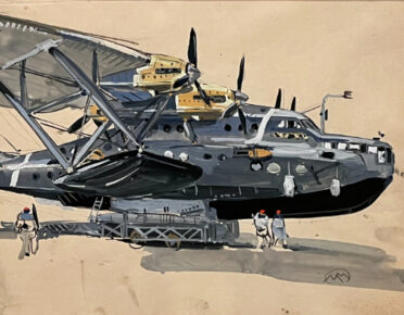 De même, bien avant le cinéaste japonais Hayao Miyazaki et sa passion des avions, Mathurin Méheut a un jour saisi un impressionnant hydravion avec ses quatre hélices. À ce stade disons-le, le quart d’heure prévu au départ pour découvrir le musée est déjà loin derrière et le piège se referme ensuite presque totalement pour le visiteur, au pied du carton mural ayant préludé à l’exécution d’une « tapisserie de la mer » géante, commande de l’administration. Le peintre aimait découvrir de nouvelles façons de travailler, de l’impression à la céramique. Son parcours fait de lui quelqu’un de vraiment infatigable, ayant parcouru le monde notamment grâce au mécène Albert Khan. Il semblait ne reculer devant aucun kilomètre afin de répondre à une commande, comme le décor qu’il fit à l’auditorium de la conserverie Heinz à Pittsburgh, Pennsylvanie.